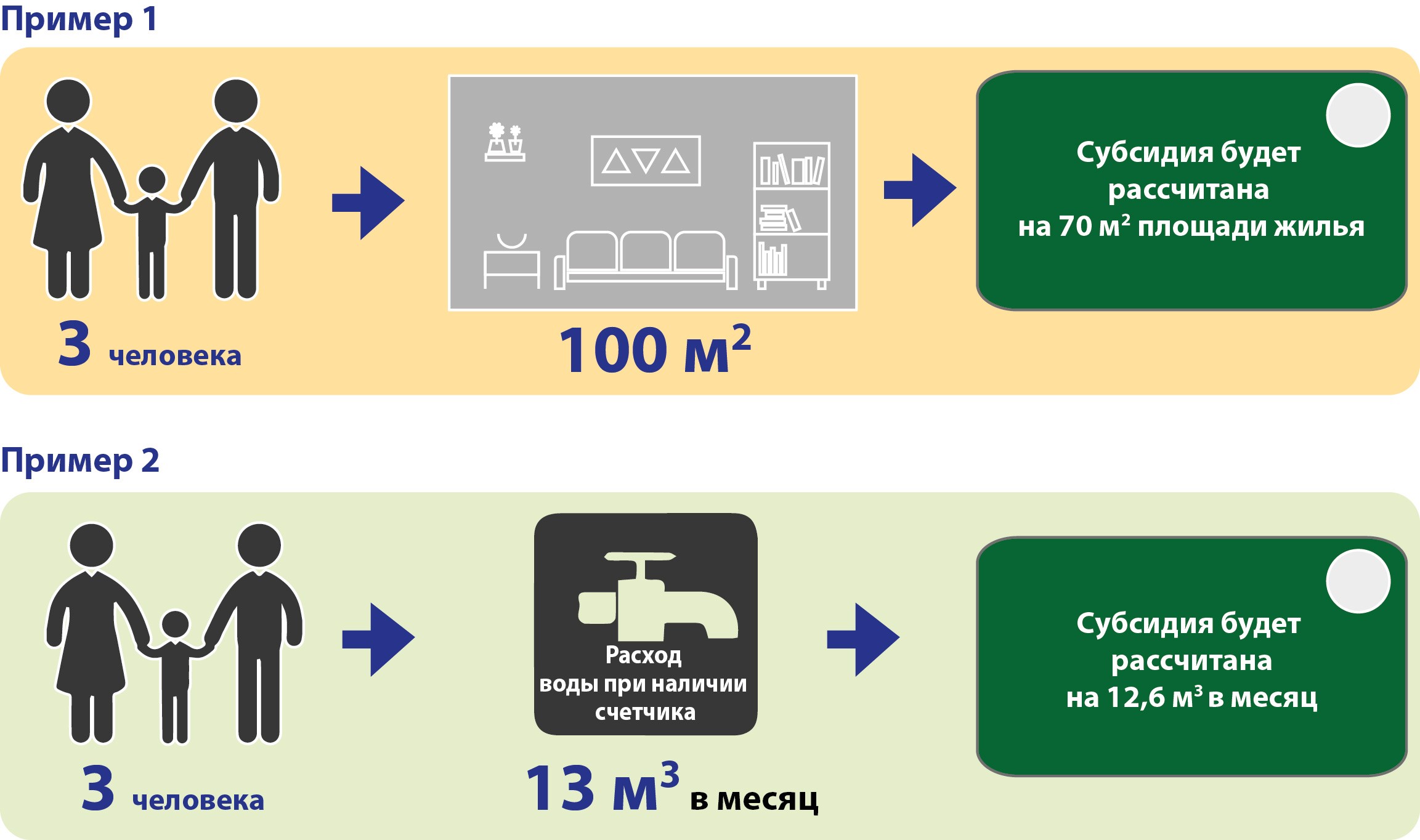 Субсидия на услуги ЖКХ будет рассчитываться только в рамках нормативов потребления. К примеру, если семья из трех человек израсходует воды больше, чем предусмотрено нормативами – 140 литров на человека в сутки (при наличии счетчика), то эти использованные сверх нормы литры воды субсидироваться не будут.