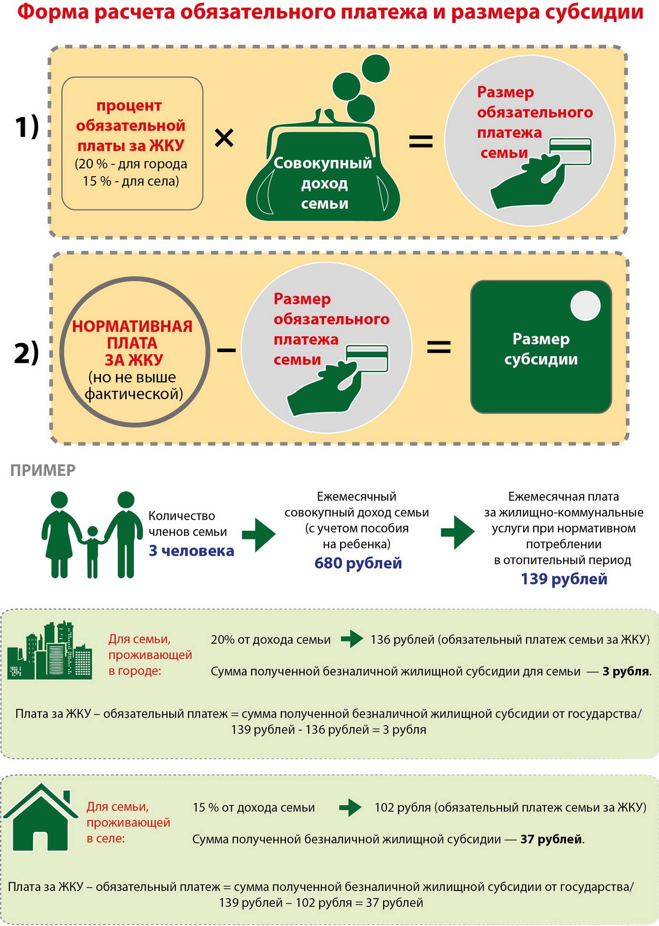Государство компенсирует затраты на оплату жилищно-коммунальных услуг, превышающие 20 % от совокупного дохода семьи (или отдельного гражданина) в городе и 15 % — в сельской местности. Конечно, только в том случае, если фактические объемы потребления не будут превышать установленных государством нормативов потребления ЖКУ.
